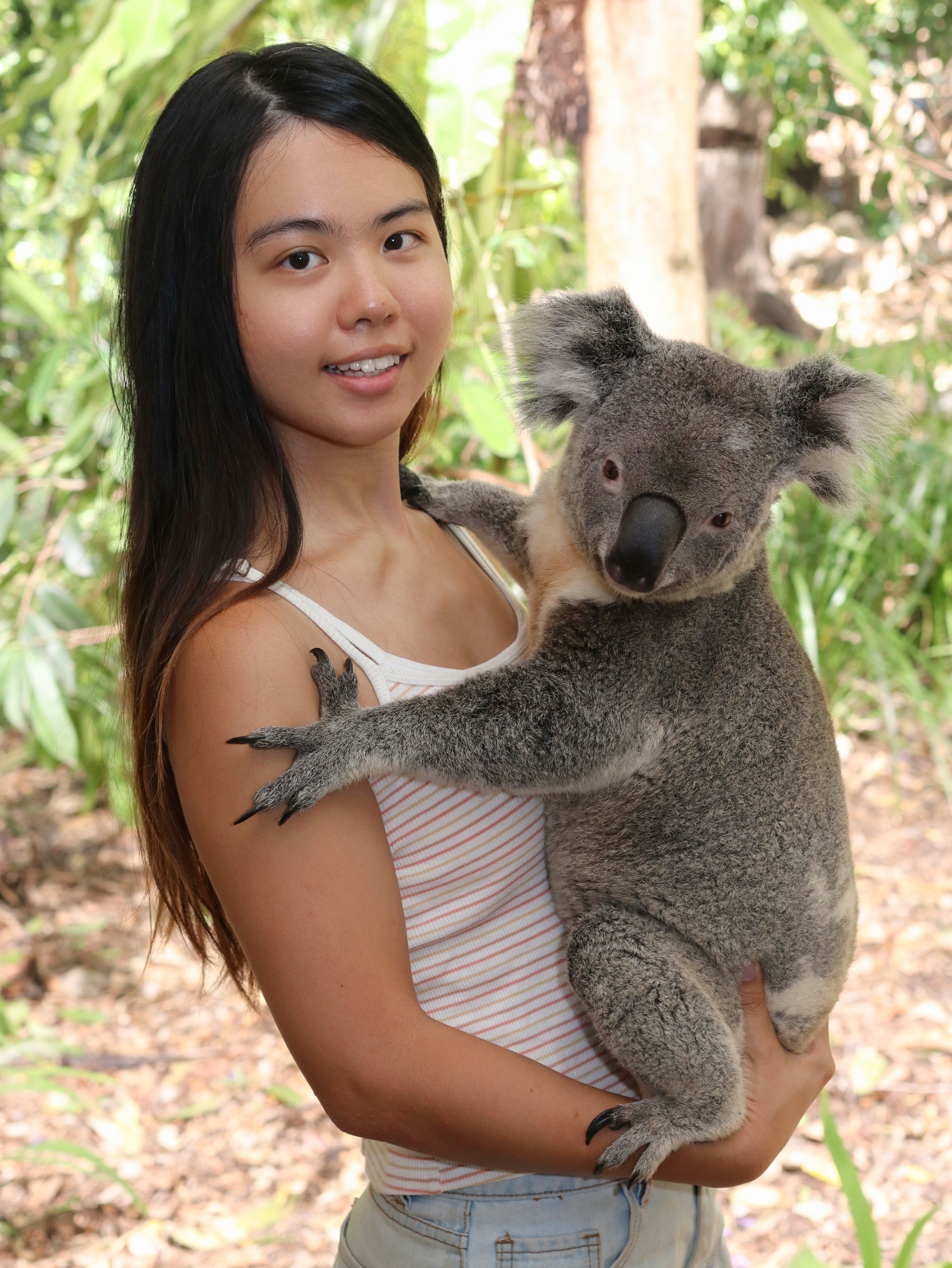 「手放平就好,讓無尾熊覺得你是一顆樹。」保育員雙手抱著無尾熊,一邊指導我。