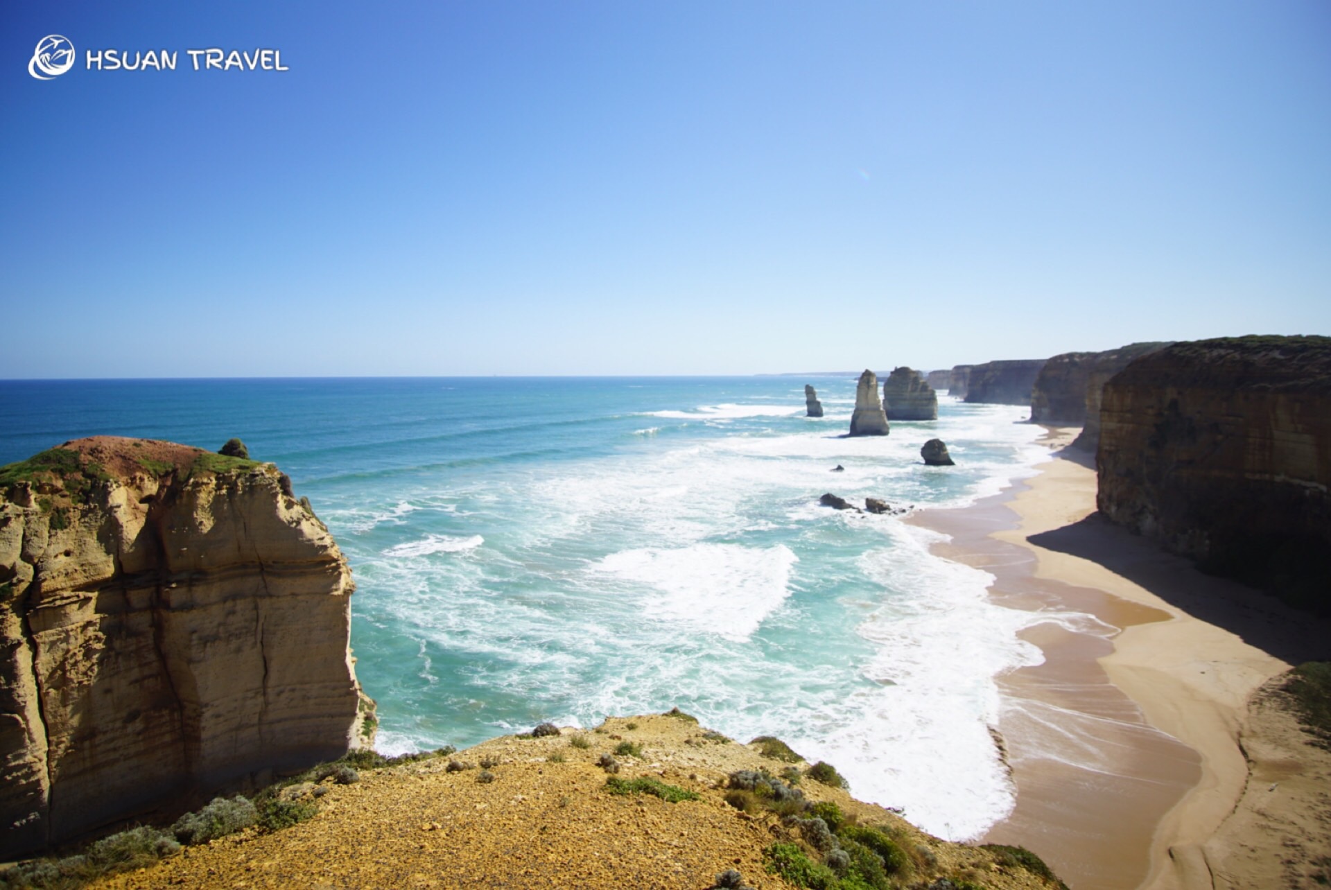 來到大洋路旅行的第二天,迎接我們的是一連串壯闊絕倫的海蝕景觀,一路上驚呼聲從未停過。海浪拍打著海岸,塑造出海蝕崖、十二塊矗立海中的石塊、拱門、大橋、岩洞⋯⋯
