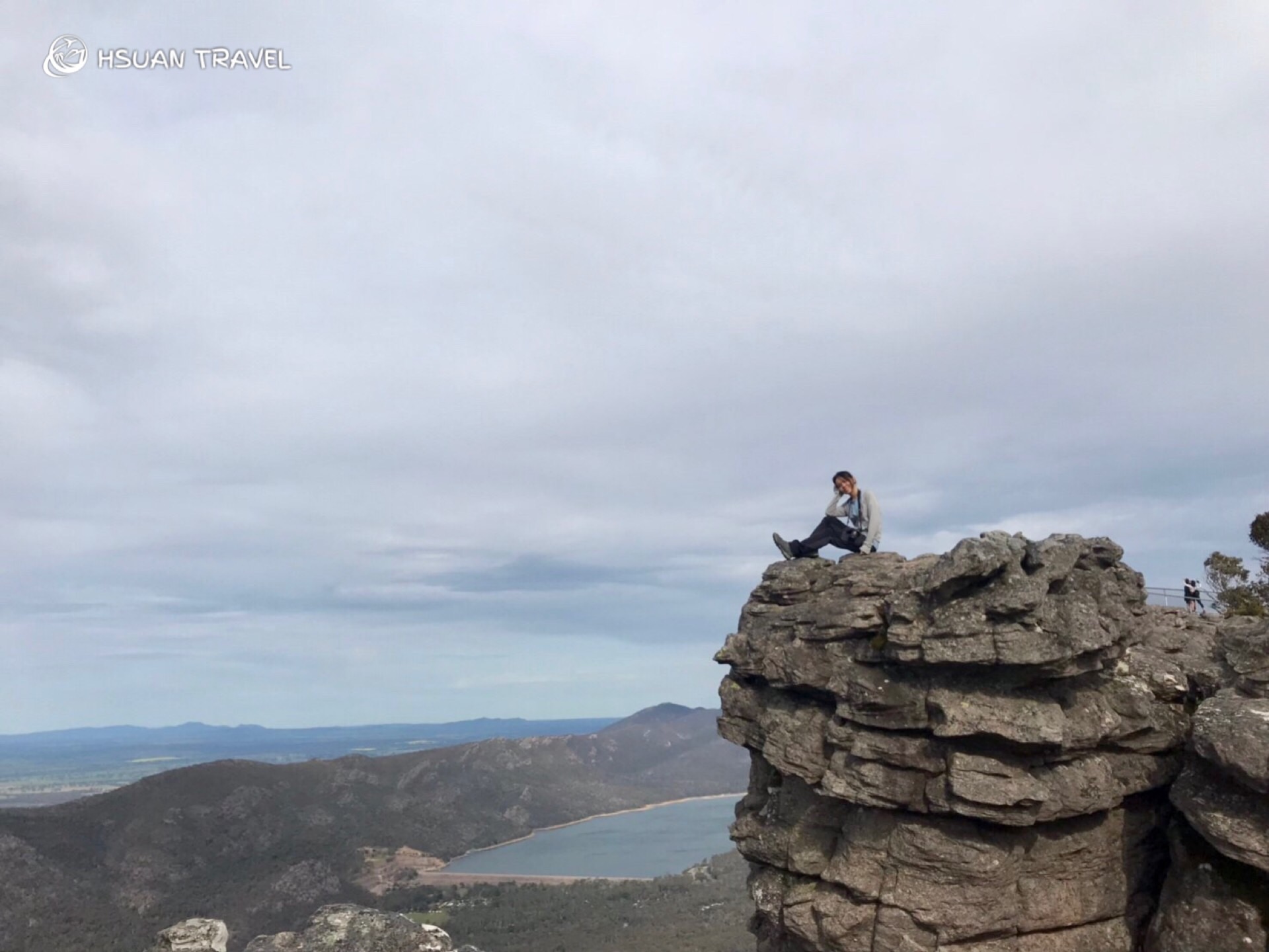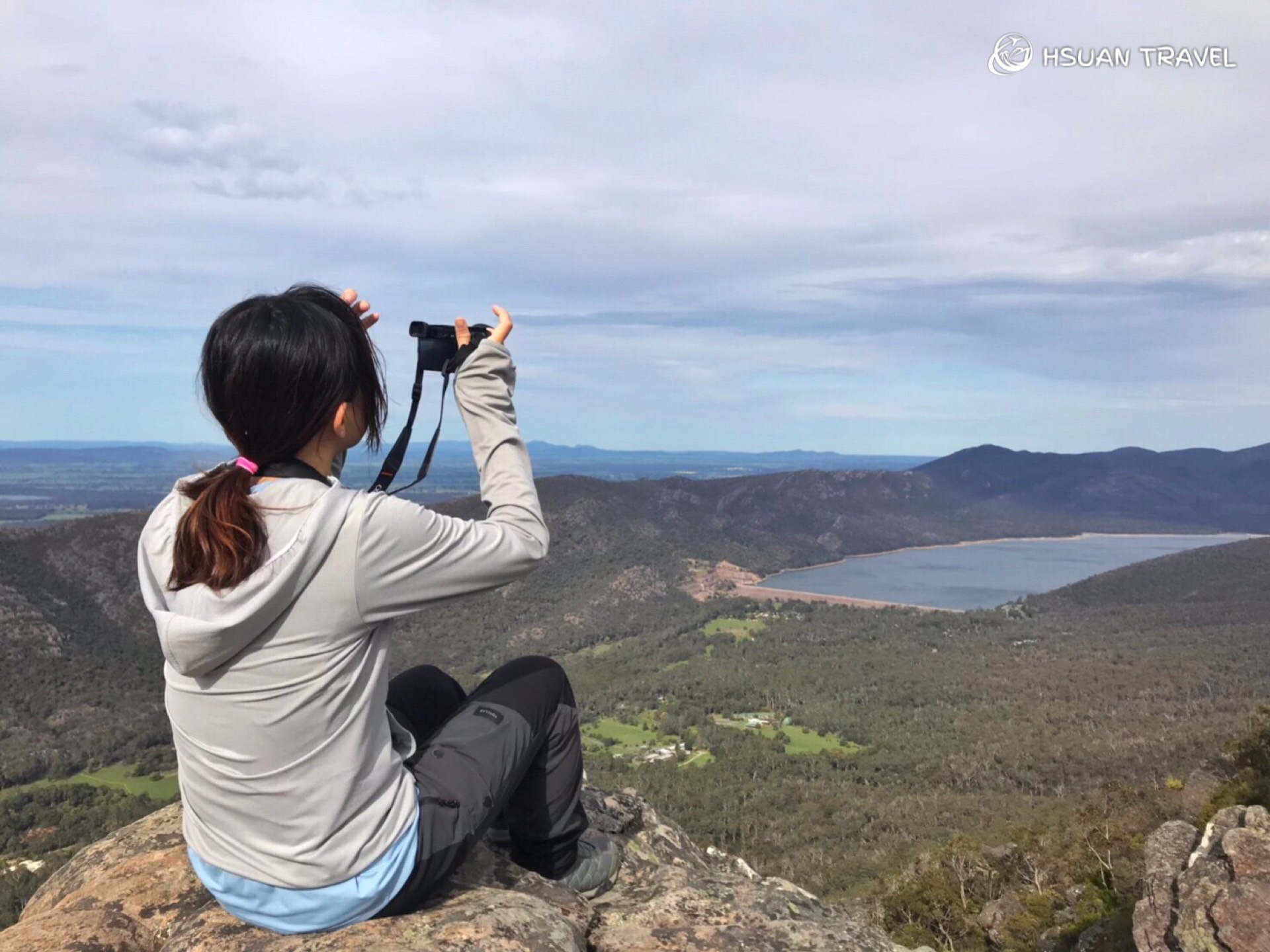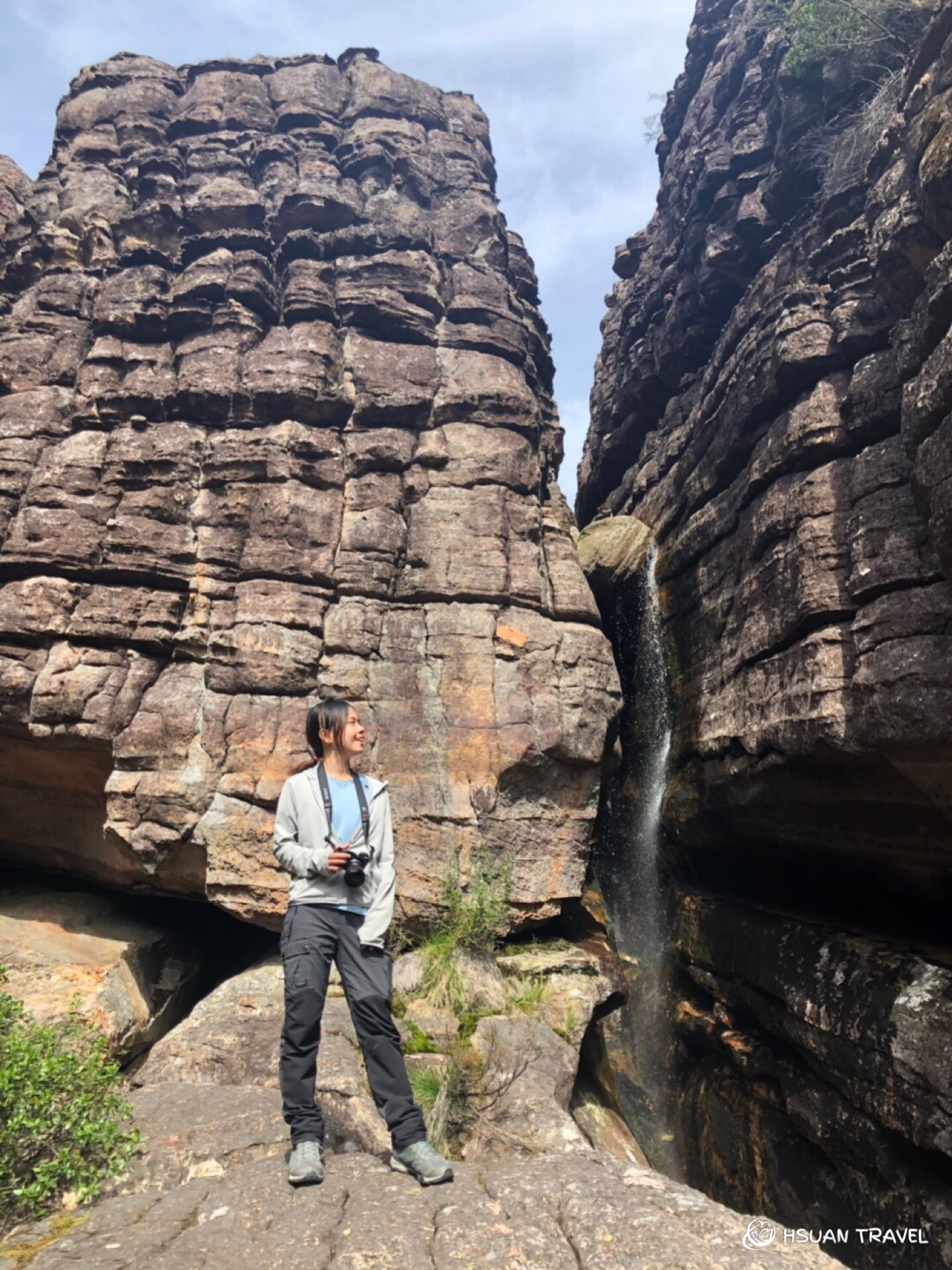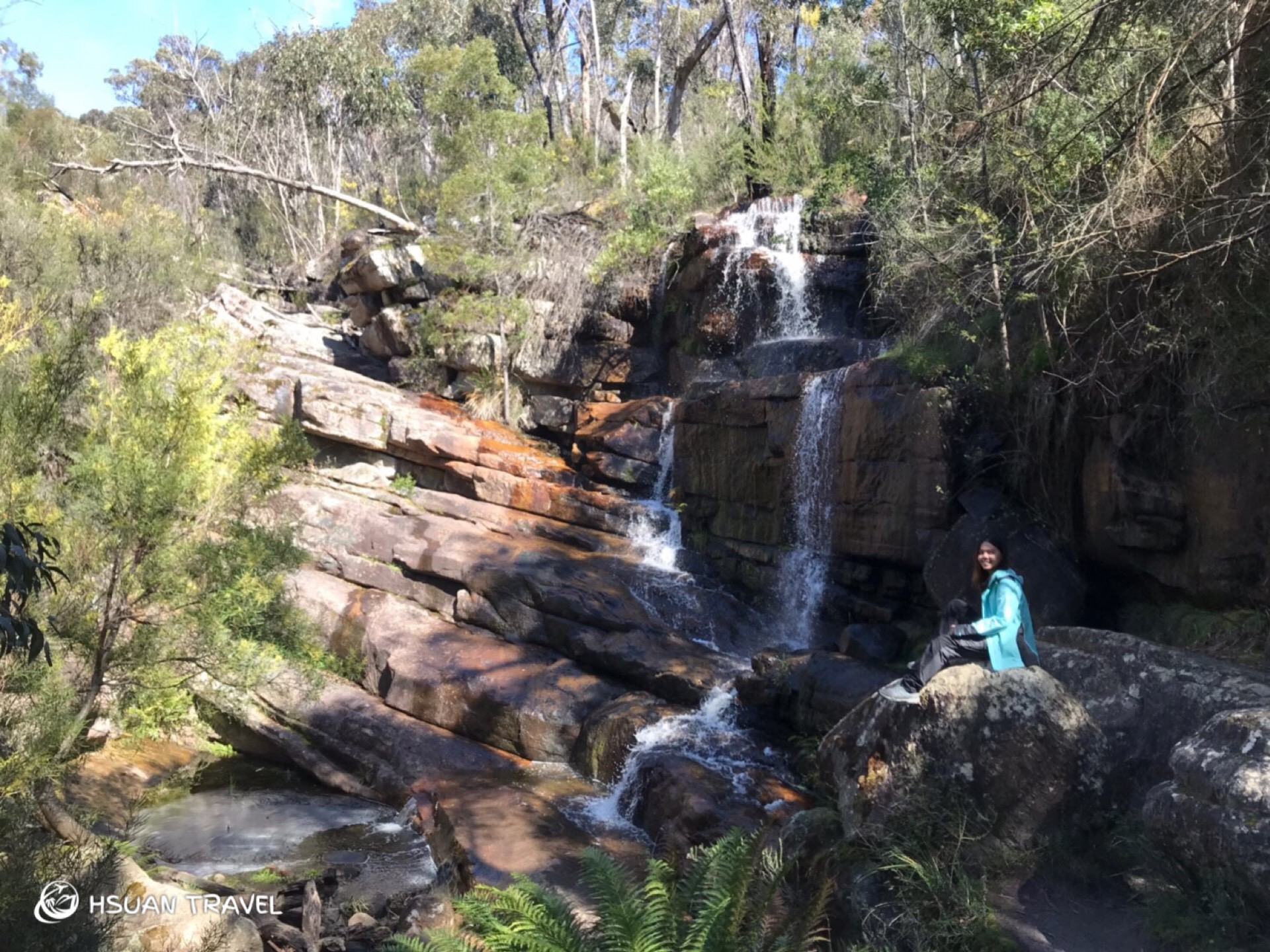 Grampians National Park很大,我們只能挑其中一條路線走。先到一個小瀑布,接著穿越高聳壯麗的峽谷,溪流自上沖瀉而下,有好幾道彩虹出現在水氣灌溉著的地方。
