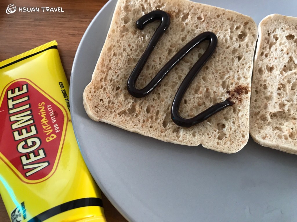 而昨天才嚷嚷著想嚐嚐Vegemite醬,今天住的民宿裡就正好有提供。而旅伴們也很貼心地去買了麵包,讓我能「好好」品嚐。