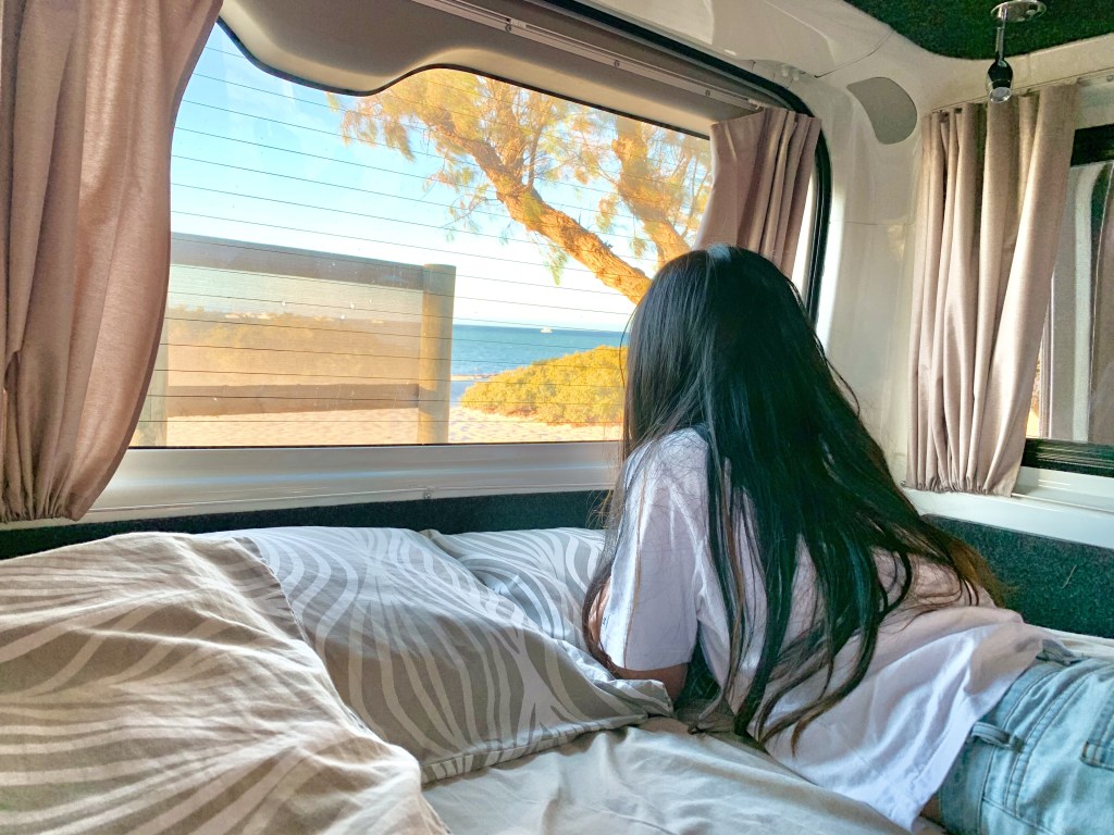 在西澳的三個禮拜,我們租了一台露營車,車上有床、有瓦斯爐、有洗手台、有冰箱。白天的時候開著車到處跑,到了夜晚隨處都能是我的家。今天想睡山裡,那麼群山秀巒就是我的壁畫;明天想睡海邊,那麼浪潮聲響便是我的入夢曲。