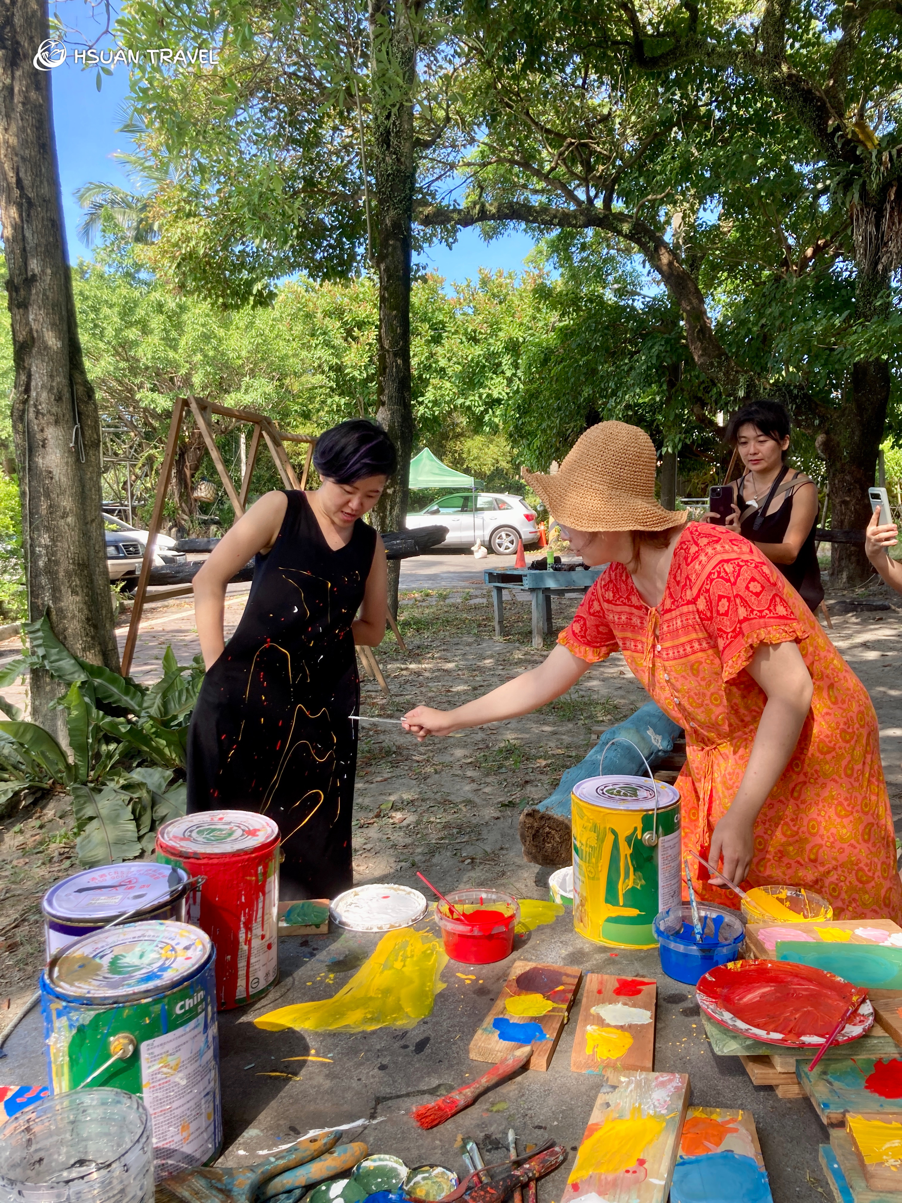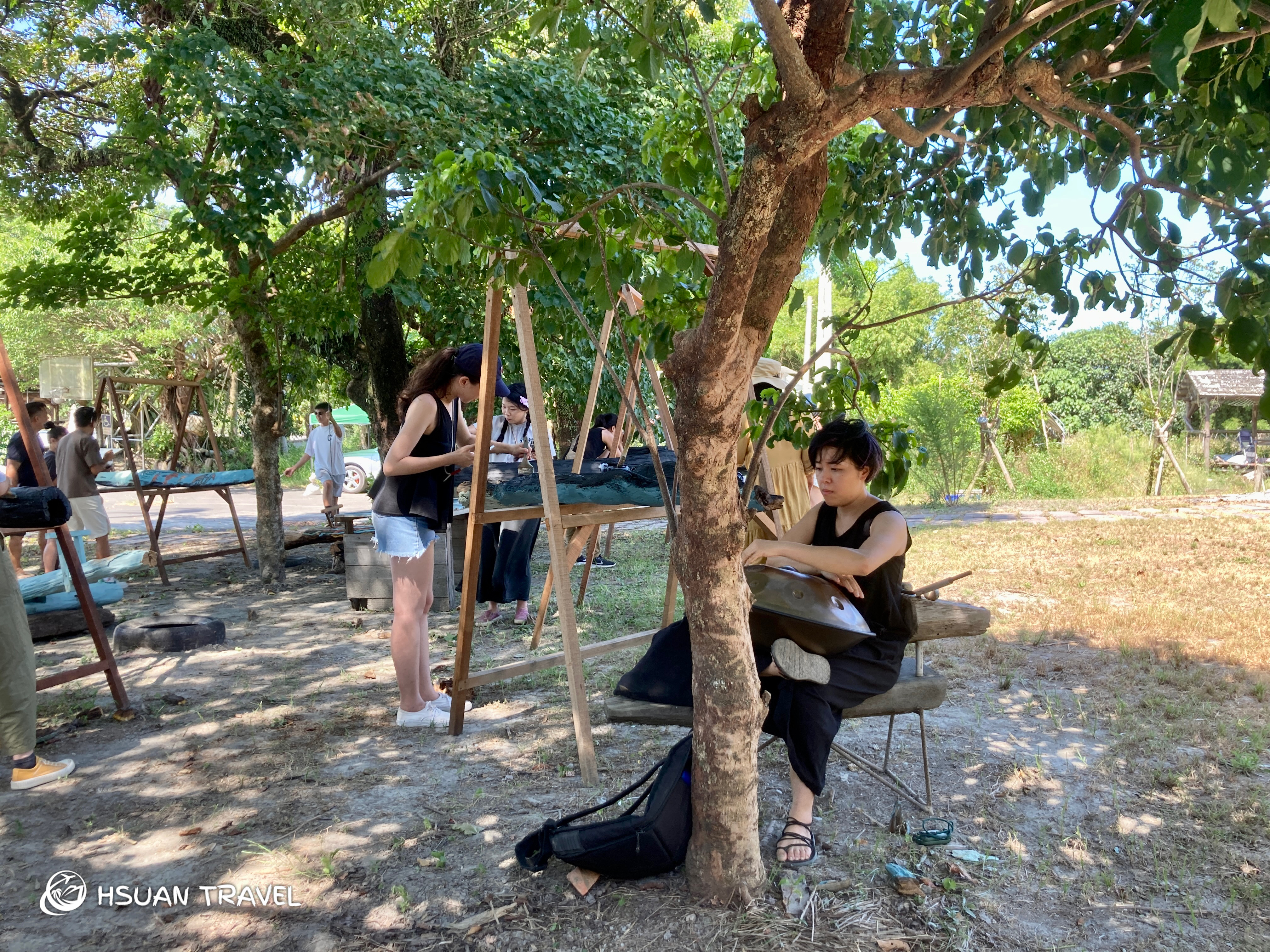 彩繪期間有夥伴隨手拿起手碟在樹下演奏,所有人的目光馬上被吸引,沈醉在悅耳的樂聲中。在薰風吹拂下,一切都是如此隨性自由。